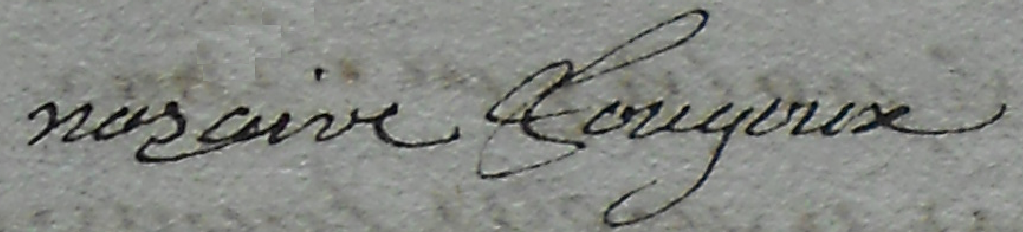 Quand je fais des recherches généalogiques à La Chapelle-Saint-Laurent entre 1730 et 1760, je tombe régulièrement sur le nom de Nazaire Fougoux. En effet, celui-ci était témoin à de nombreux mariages et il signait de façon lisible systématiquement.