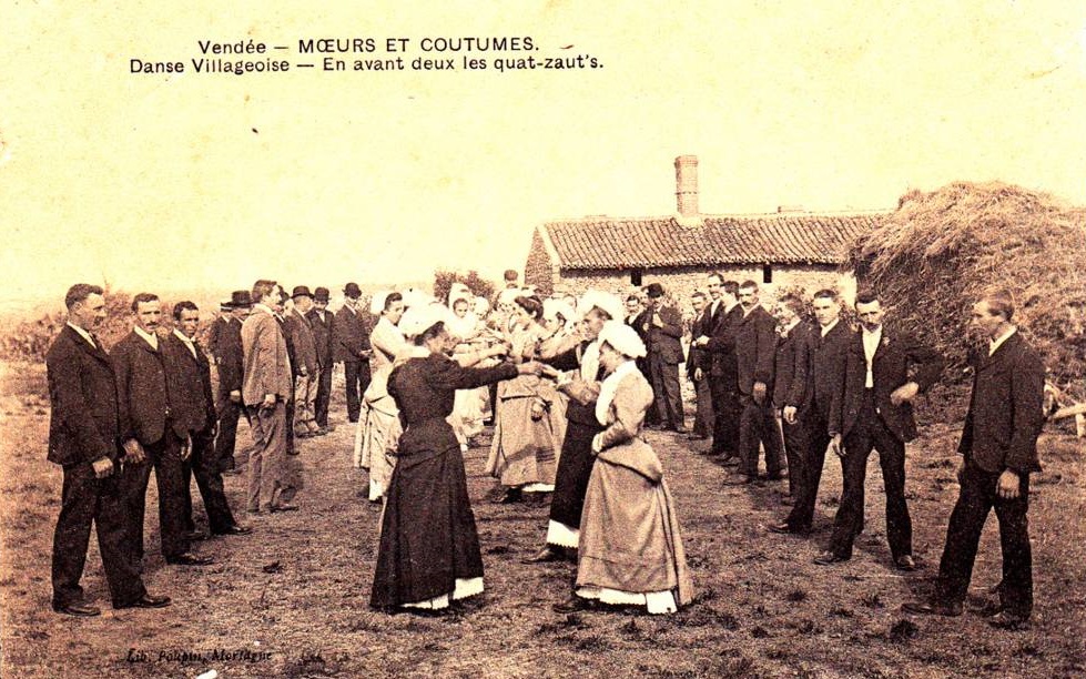Ce que les archives paroissiales, communales ou notariales nous montrent rarement, c’est que nos ancêtres ne se contentaient pas de naître, se marier, procréer et décéder. Entre temps, ils vivaient ! Et vivre, je l’espère, c’est aussi connaître des moments heureux, insouciants : chanter au coin du feu ou durant les travaux des champs, jouer de la musique et danser à un mariage ou lors de fêtes… Grâce au travail des collecteurs de mémoire, il reste aujourd’hui des chants, danses, contes, traditions, recettes d’autrefois. C’est une autre manière que celle des généalogistes de se souvenir du passé. Grâce à eux, je peux aujourd’hui me rappeler de quelques instants joyeux et légers de mes aïeux. J’ai sélectionné pour vous une chanson et une danse traditionnelles du Poitou qui ont traversé les derniers siècles, et que j’aime particulièrement, car elles font aussi partie de ma vie.