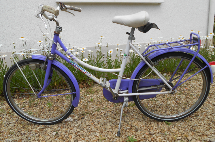 Ma mère est née à Terves, dans le nord des Deux-Sèvres. Quand elle était jeune, à la campagne, dans les années 1930, les déplacements se faisaient à pied le plus souvent. Quand les distances s’allongeaient, on utilisait la bicyclette. Cependant le vélo était réservé plutôt aux hommes. Les voitures étaient très rares, les déplacements plus lointains se faisaient en train. Ma mère a commencé à pédaler au début de la guerre 39-45, à l’âge de 12 ans, sur le vélo de son père. Comme la bicyclette paternelle avait un cadre avec une barre, il lui a fallu se pencher et se tordre pour apprendre. Plus tard, elle a eu un vélo à partager avec ses trois sœurs. Quand elles allaient à deux à Bressuire, la ville la plus proche, une faisait la moitié de la route à vélo, le posait dans le fossé et finissait à pied, L’autre faisait le contraire, partait à pied, récupérait le vélo et finissait en pédalant. A l’époque, il n’y avait pas besoin d’antivol. Le vélo lui a donc permis dans sa jeunesse d’avoir plus d’indépendance, de pouvoir sortir librement et un peu plus loin que son village. Après son mariage en 1952, la famille s’est installé à Niort, la préfecture au sud du département. C’était le début des « 30 glorieuses » avec l’essor de l’automobile. Mon père a passé son permis et a acheté sa première voiture, une 4CV, qui était nécessaire pour pouvoir aller voir les cousins et cousines dont mes parents s’étaient éloignés. Ma mère a tenté d’avoir son permis plus tardivement, mais sans succès, elle était sans doute trop émotive pour l’obtenir. Elle n’a donc pas pu aller jusqu’au bout de sa démarche d’indépendance et n’est pas, comme Spirou, passé du vélo à la voiture. Cela ne l’affecte pas vraiment aujourd’hui. Elle a bon pied, bon œil et bon coup de pédale. Elle utilise encore régulièrement son vélo dans ses déplacements.