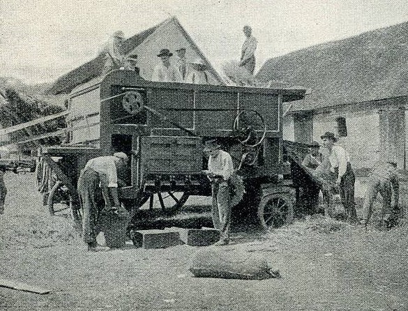 « Pour monter la paille, il y avait sept ou huit gaillards glorieux de leur force. Les secoueurs leur préparaient d’énormes fourchées ; quand ils avaient piqué là-dedans et redressé leur outil, ils disparaissaient complètement et la paille avait l’air de monter toute seule, lentement, le long des hautes échelles. »