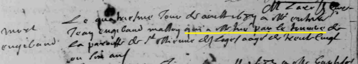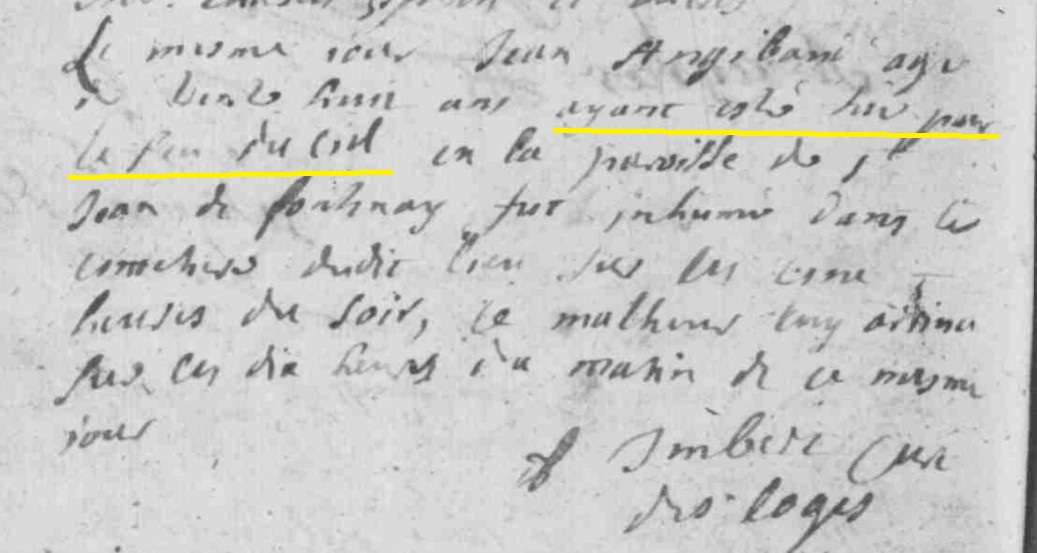 Les 2 prêtres mentionnent le décès dû à l’orage, le premier évoque le tonnerre et celui de sa paroisse note qu’il a été « tué par le feu du ciel ».