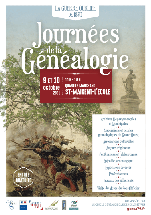 Je ne suis pas très présent sur ce blog ces derniers mois. La préparation par le Cercle généalogique des Deux-Sèvres des prochaines Journées de la généalogie à Saint-Maixent-l’École en est la raison. Elle n’accapare heureusement pas tout mon temps mais une grande partie de mes pensées. Comme je suis actuellement le président de l’association, je me dois de suivre attentivement l’organisation de cette manifestation. J’ai la chance d’être très très bien entouré par toute une équipe qui a pris en charge une intendance particulièrement lourde.