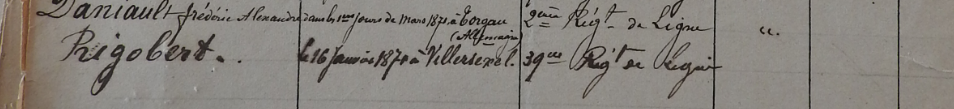 Ce que l’on sait de RIGOBERT tient donc en peu de mots : il était dans l’armée active et appartenait au 39e régiment de ligne. Si on suit l’histoire de ce régiment, on peut donc supposer qu’il a servi en Algérie et qu’ensuite, lorsque la guerre a été déclarée, il a été rattaché à l’armée de la Loire et ensuite à l’armée de l’Est.
