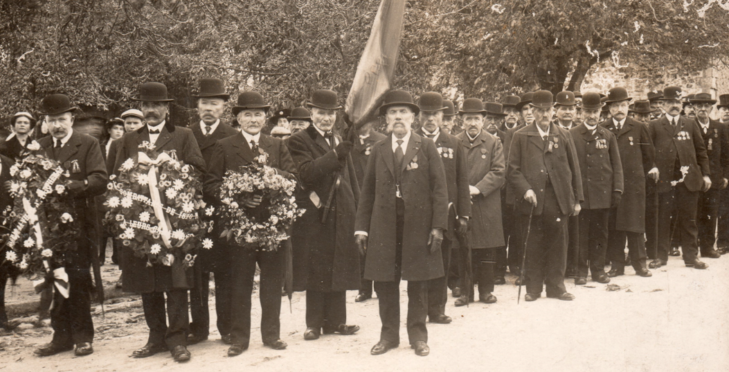 Peut-être fait-il aussi partie de ces anciens combattants de 1870 aux fières moustaches déposant des gerbes de fleurs à Parthenay. Le cliché date de la guerre 14-18 et ces hommes âgés, sous leur allure martiale, ont sans doute des sentiments partagés entre le désir de revanche envers l’Allemagne et l’angoisse de perdre un fils ou petit-fils.