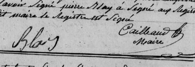 Ce n’est pas mon ancêtre mais son beau-frère, Jean Cailleaud, qui est nommé maire de Cirières en 1835. Selon la règle en vigueur à l’époque, il a été choisi par le préfet des Deux-Sèvres. Il dispose d’un pouvoir absolu sur son territoire puisque les conseillers municipaux ne sont consultés que si le maire le juge utile. Il semble associer parfois Pierre Blay à sa fonction. On retrouve alors sur les actes d’état civil leurs deux signatures, celle de Jean Cailleaud en tant que maire et celle de Pierre Blay en tant que témoin plus ou moins régulier de naissances et décès. Jean Cailleaud reste à la tête de sa commune 13 ans, jusqu’en septembre 1848. Cette année voit la fin du règne de Louis-Philippe et l’avènement de la IIe République. Est-ce suite à ce changement de régime politique que Jean Cailleaud abandonne son poste ou bien est-ce pour des raisons personnelles ? Je penche pour la 2e hypothèse. J’ai même l’impression qu’il a influé sur le choix de son successeur puisque c’est son beau-frère, mon ancêtre Pierre Blay, qui reprend le flambeau.