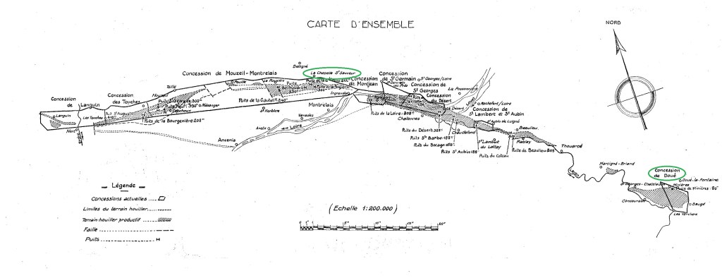 Notre Julien Taubant revient sans doute souvent au village de son enfance où il côtoie Victoire Richard, ils se fiancent, puis se marient à Varades en 1839. Après leur union, ils s’installent à La Chapelle-Saint-Sauveur, où naît leur fils aîné, Julien Victor. Puis en 1841 et 1842, Julien perd ses 2 parents. Est-ce ce qui pousse le jeune couple à quitter La Chapelle-Saint-Sauveur ? Julien, Victoire et leur fils partent s’installer à l’extrémité est du bassin minier, à Soulanger (village aujourd’hui rattaché à Doué-la-Fontaine), dans le Maine-et-Loire.