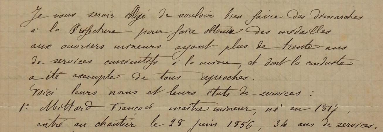 La vie de François Mitard nous apprend que les mineurs travaillaient jusqu’à un âge très avancé quand ils avaient la chance de passer à travers les accidents et les maladies professionnelles. Celle de ses fils nous montre que les enfants devaient commencer très jeunes à travailler, certains dès l’âge de 12 ans, et parfois pas très longtemps quand ils avaient la malchance de laisser leur vie au fond d’un puits comme Auguste Mitard. Les lois sociales sont encore rares et pas toujours respectées.