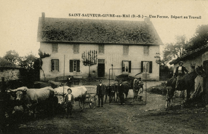 De quoi vivaient nos ancêtres ? C’est la question que se posent les généalogistes qui veulent aller au-delà des quelques dates qui marquent les vies. Beaucoup travaillaient la terre comme ces paysans de St-Sauveur mais étaient-ils propriétaires, fermiers, métayers, journaliers ? Étaient-ils aisés ou miséreux ? Avaient-ils des activités complémentaires ? Quel tâches accomplissaient les femmes ? Les réponses ne sont pas toujours faciles à trouver et la photographie peut être un auxiliaire précieux pour se faire une idée. Je vous conseille pour cela de visiter cet album photo de fermes des Deux-Sèvres réalisé pour l’exposition universelle de 1889. Peut-être y verrez vous la ferme exploitée par un aïeul.