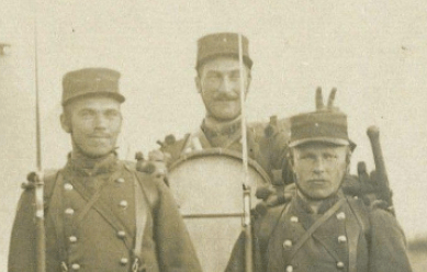 L, comme lapin. Soldats du 114ème Régiment d’Infanterie. [Un soldat fait des oreilles de lapin à un de ses camarades].
