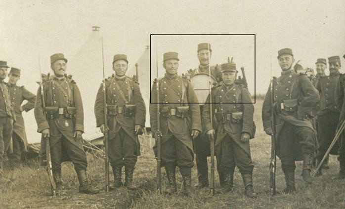 Il fallait trouver l’image cotée 40 FI 18107 et le mot LAPIN contenu dans le titre « Saint-Maixent-l’École. Soldats du 114e Régiment d’Infanterie. Un soldat fait des oreilles de lapin à un de ses camarades »
