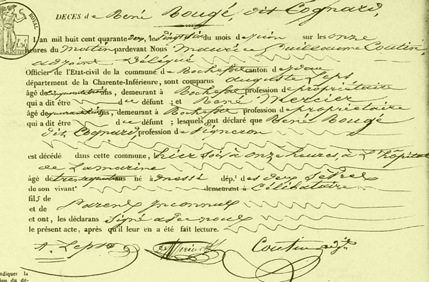 7 ans plus tard, René ROUGÉ décède de fièvre le 25 juin 1842 à 11 heures du soir au même hôpital à l’âge de 53 ans.