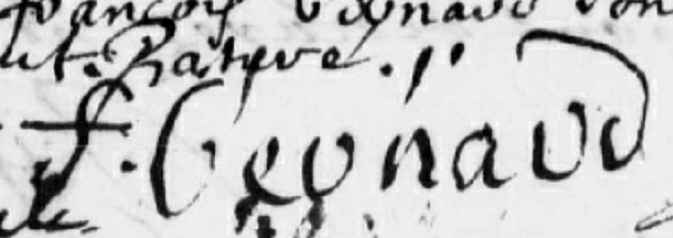 Le grand-père, François BERNARD, est décédé en 1684 au Pin et il y résidait depuis quelques années. Je ne connais pas son métier mais il avait sans doute un peu d’instruction puisqu’il savait signer. Sa femme, Sébastienne AUMOND a-t-elle vécu au Pin ? Je n’en trouve pas la trace. Elle y est au moins passé dans sa jeunesse pour être marraine plusieurs fois. Le couple a vécu à Nueil-sur-Argent entre 1639 et 1652 pendant les premières années de leur mariage. Ils ont eu 6 enfants mais seul le destin de leur fille Perrine née en 1641 est connu.