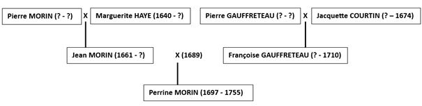 Les grands-parents paternels, Pierre MORIN et Marguerite HAYE, ont vécu et travaillé à la ferme Beauregard du Pin de 1661 à 1666 au moins et sans doute au-delà. Ces six années correspondent à la période où sont nés leurs trois garçons dont Jean, le père de Perrine.