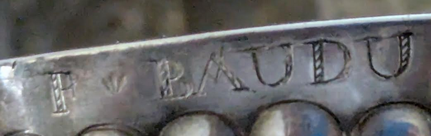 Est-ce bien un F l’initiale du prénom qui apparait devant le patronyme BAUDU ? Et si c’était un P, modifié par un choc sur le métal.