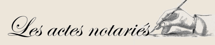 Avec Sylvie, comme nous avions envie de mieux les comprendre, nous avons entrepris de transcrire certains d’entre eux afin de tenter de les analyser. Nous avons fait de belles découvertes que nous voulons vous faire partager. Chaque type d’acte peut avoir un intérêt pour le généalogiste qui veut mieux connaître la vie de ses ancêtres. Et comme nous allons feuilletonner, il y aura ce bandeau.